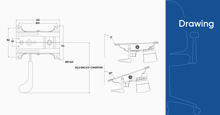 Lever for Gas lift and lock position Knob for tension adjustment Lock in upright position
