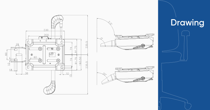Part No. : 0SS04APC01 Initial seat Angle : 1 degree Back recline angle : 20 degree Sliding movement : 50 mm